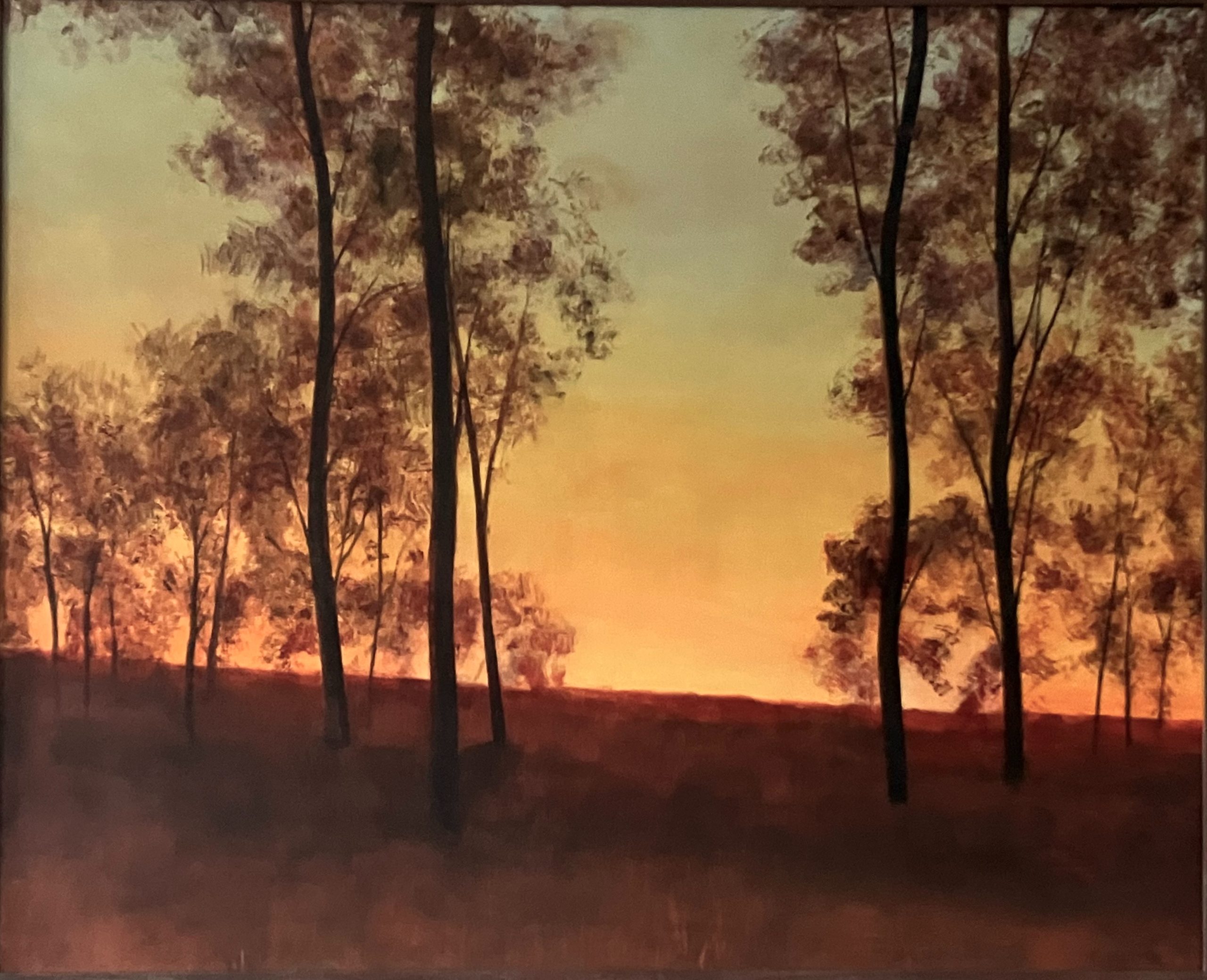 Elissa Gore is a landscape painter who paints from both observation and memory. In her work, Elissa strives to find a feeling of the universal in the natural landscape. Sunset walks and frequent studies painted at Cooper Lake inspires many of her large works as she is influenced by water. Forty years ago, she decided she wanted to make art about nature, starting with sculptures and drawings of human anatomy and plants. Later, she discovered the feeling she wanted to express in art was communicated best in paintings of the landscape.