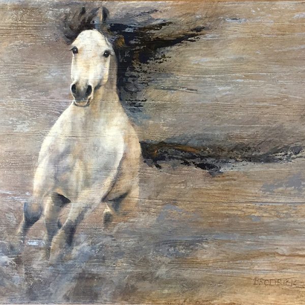 J.M. Brodrick studied painting in her youth and received her first scholarship at the age of 13. Her grandmother, a professional artist from Helsinki Finland, was an important influence: “My Grandmother helped me connect with other artists and shaped me at an early age to express myself with painting.” In the 1977 she moved to Fairbanks Alaska where the rugged lifestyle and freedom of the open country inspired her to further develop her artistic talents. Brodrick now lives in Oregon and is surrounded by the beauty of the Pacific Northwest. Works held by numerous corporate and private collections including: Atlantic Richfield Corporation, the Embassy of the Russian Federation in Washington D.C., the State of Alaska and Global National Health Hospital in Tokyo, Japan.