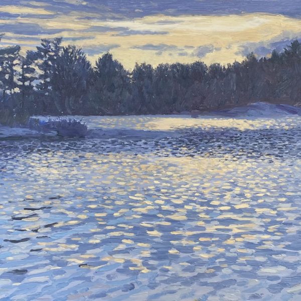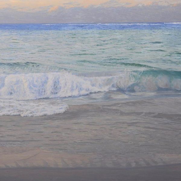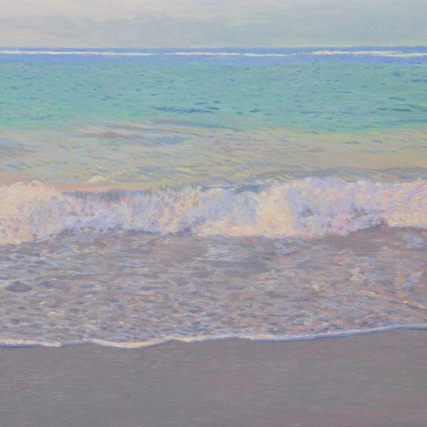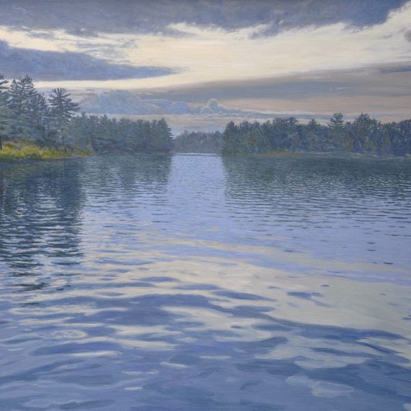 From a distance, the viewer is drawn towards what appears to be a photograph. Upon closer inspection, brushstrokes are revealed and the observer is made aware of the meticulous layers of brushwork, resulting in the illusion that the viewer is still for an instant, at the waters’ edge.