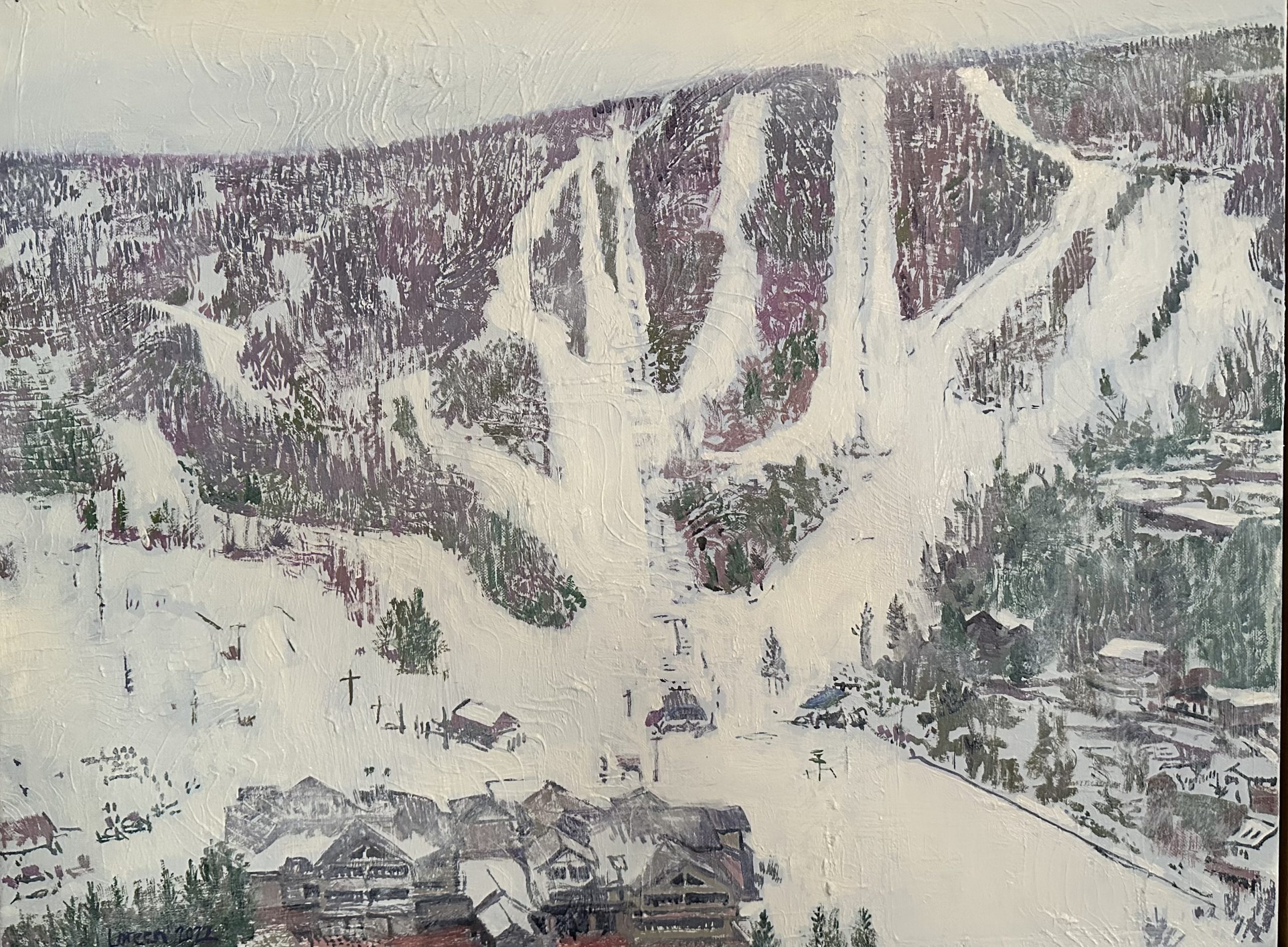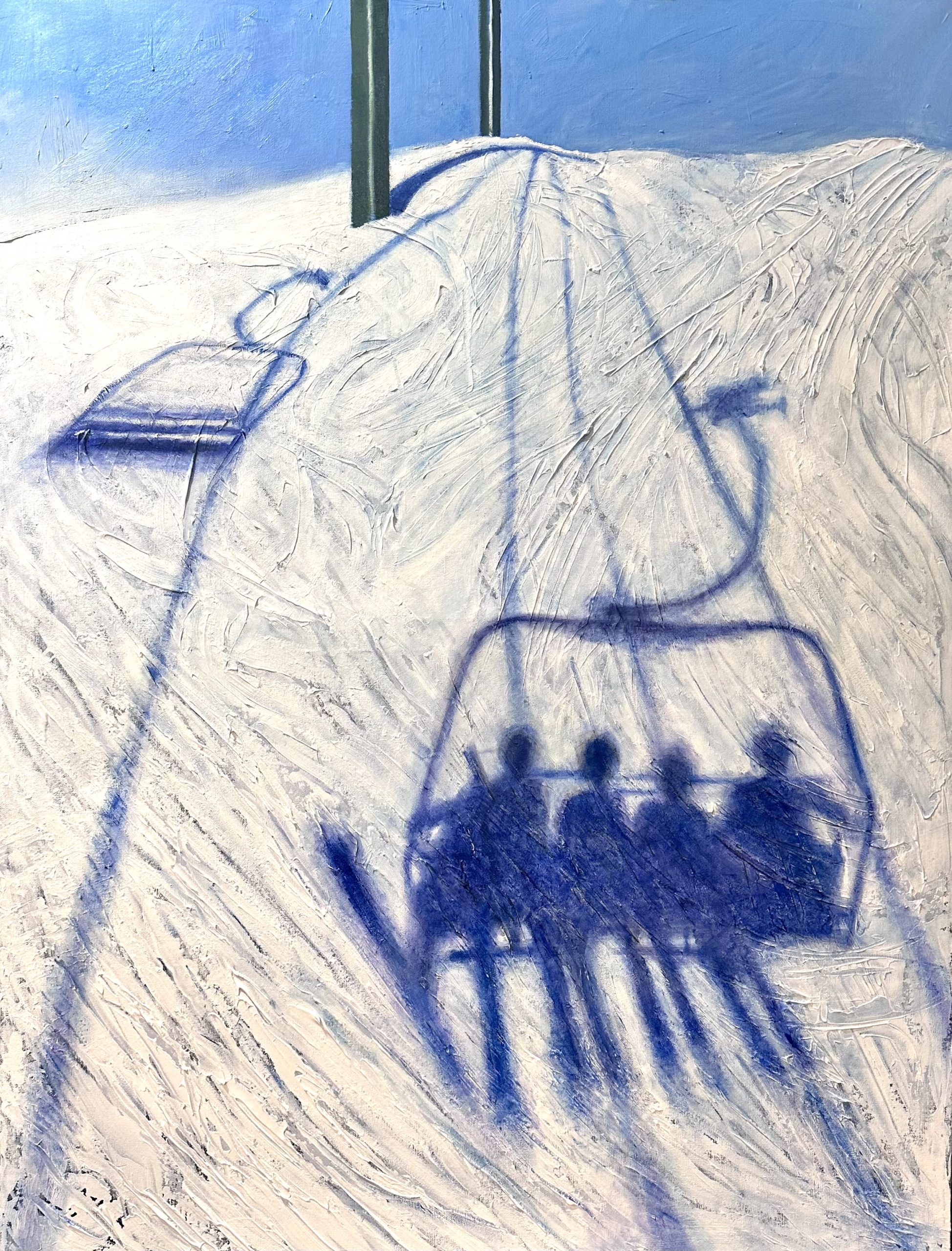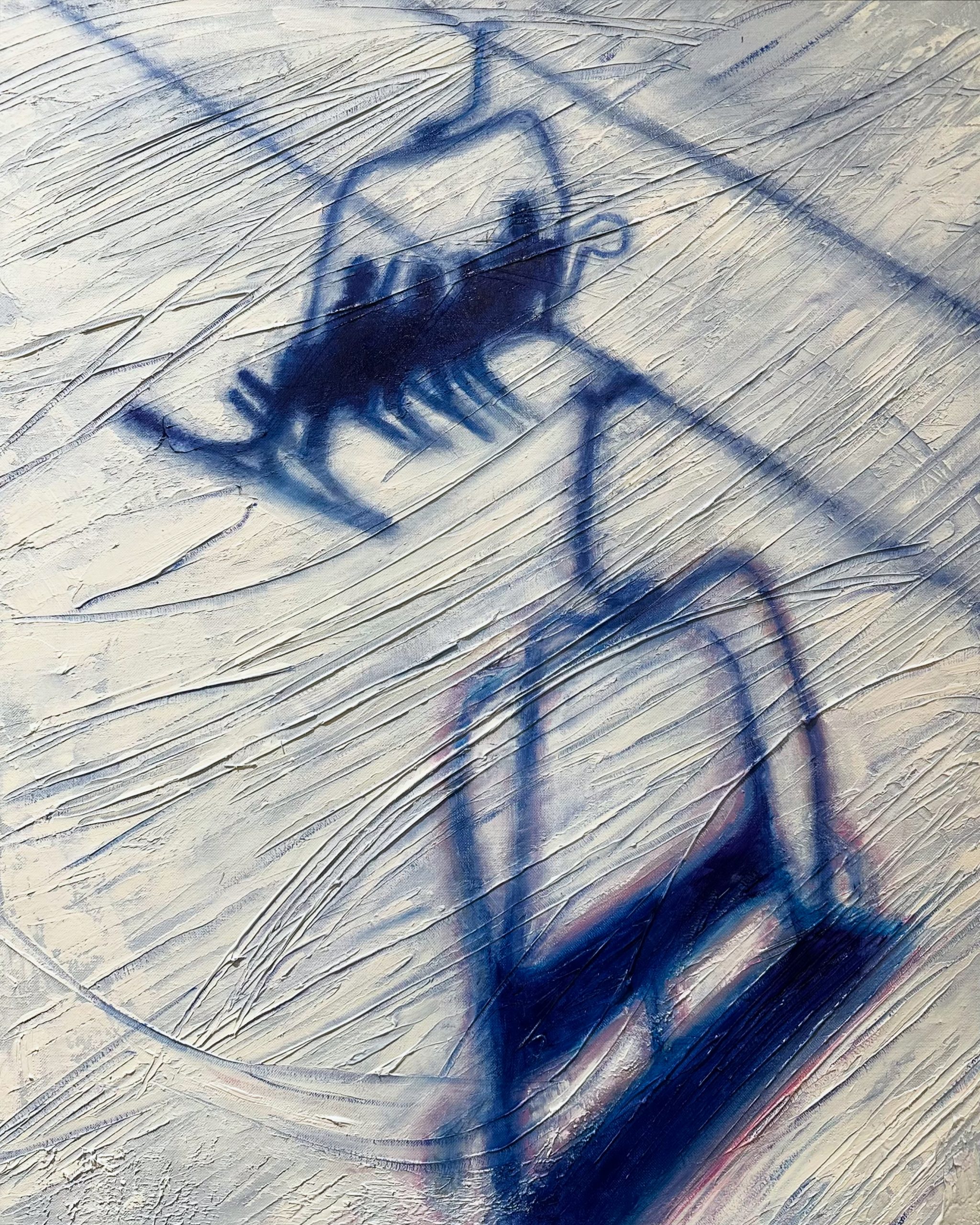 Loreen Oren has a fascination with patterns, unintentionally created by random forces of nature. The pattern emerges from shadows and light reflections of winter trees on snowy ski slopes, a mirror-like effect caused by water-filled rice patties, or the rhythm of the tidal dance, carving ripples into the sand. The repetition of lines creates a contemplative vibration on the canvas.