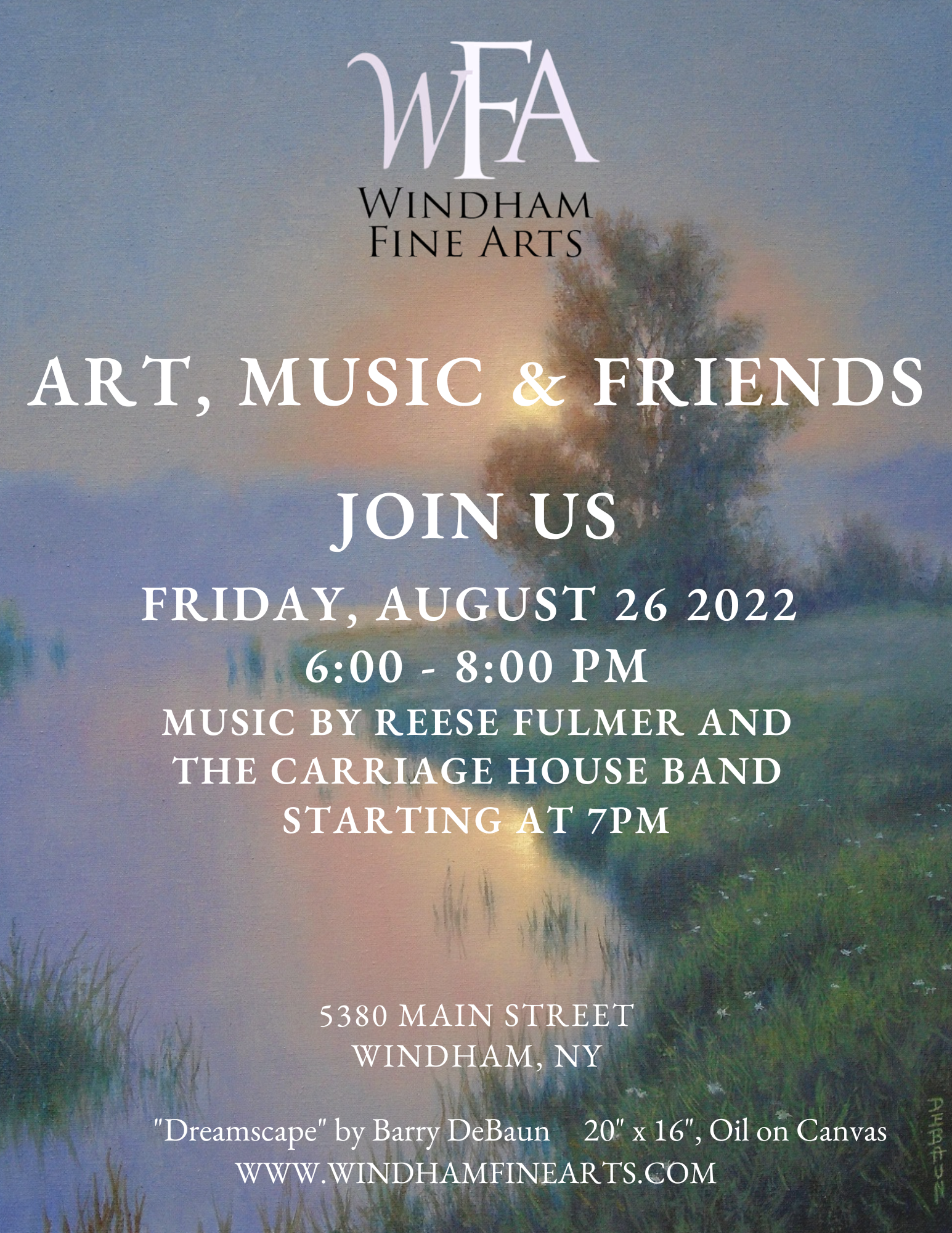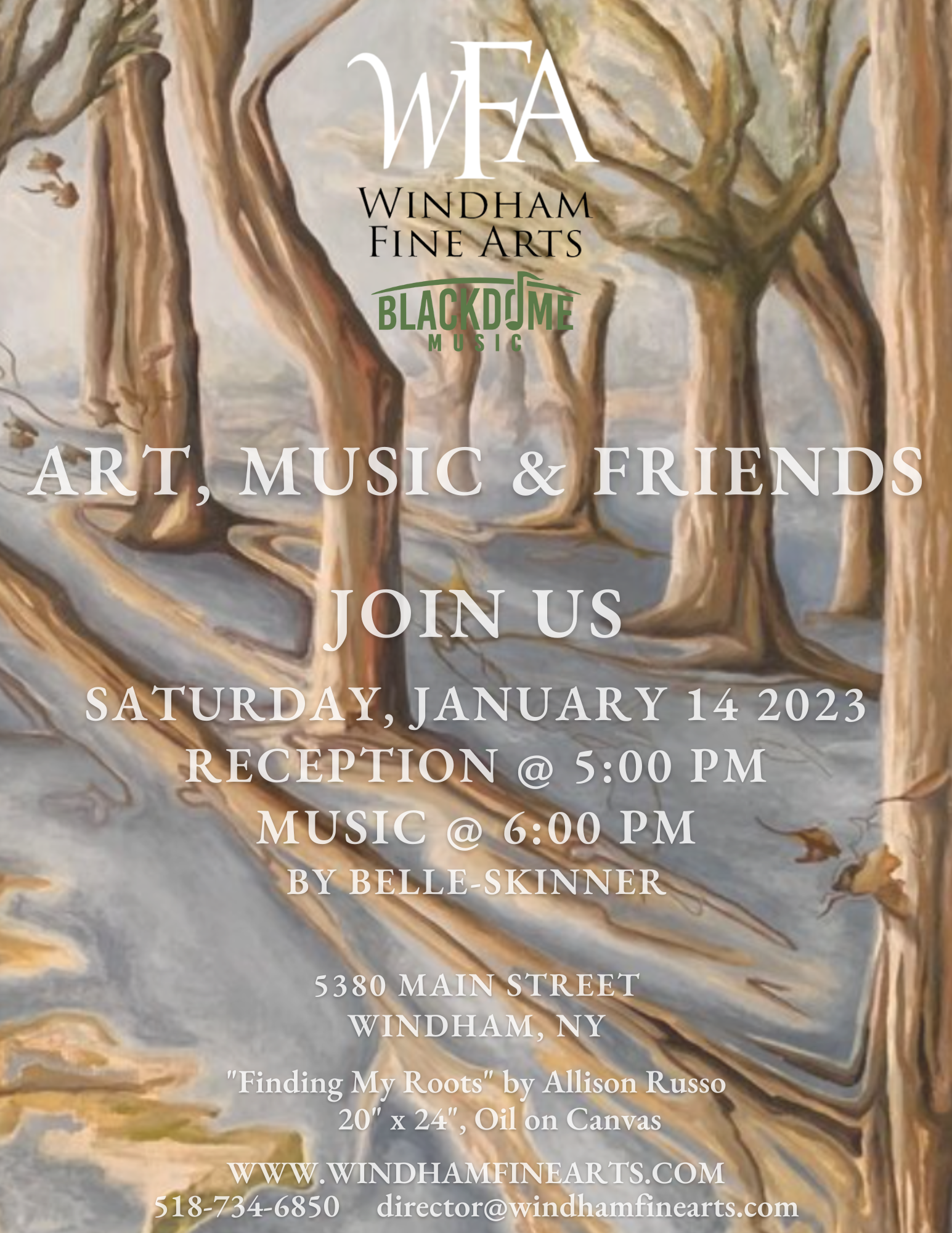 Winter in the Catskills Barry DeBaun Art ReceptionSaturday, January 20, 2024 4:00 PM – 6:00 PM Celebrate 2024 and the serene beauty of the Catskills through art. Join us at Windham Fine Arts for a winter soiree and art show, showcasing new works by Barry DeBaun. DeBaun works in a traditional style, seeking to capture the beauty…